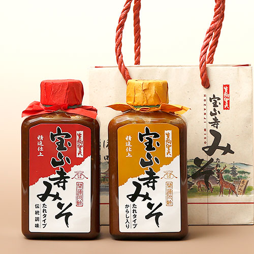 ”宝山寺みそ”は、宝山寺「聖天さんの大根炊き」のみそだれを商品化したものです。 1本入小手提げ袋入タイプは、お土産用にも最適サイズです。